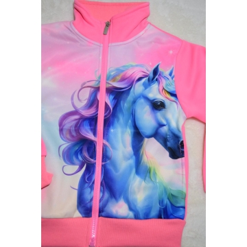 Nádherná duhová mikina pro holčičky do školky / školy - jarní barvičky, obrázek jednorožce - koníčka.
