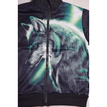 Na rukávu je také nápis. Zapínání ke krku do stojáčku.