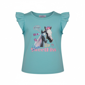 Rukávky nabrané - volánky, třpytivý nápis.