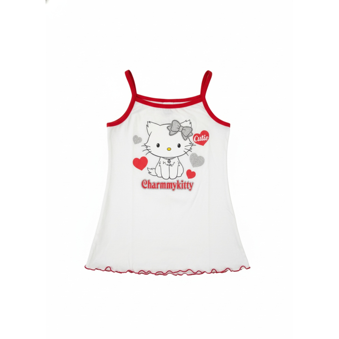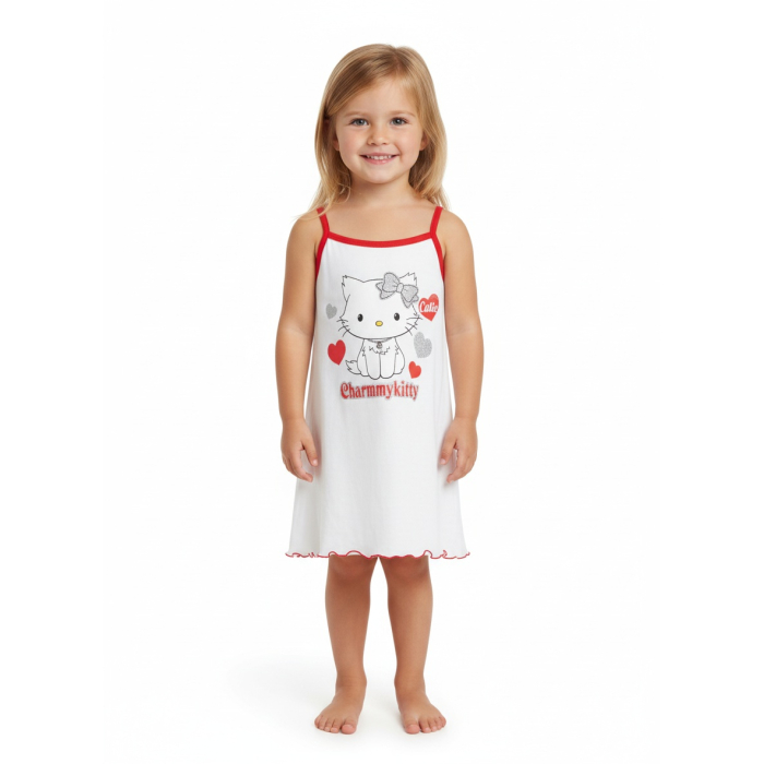 Tato roztomilá noční košilka na ramínka s oblíbenou kočičkou Charmmy Kitty je ideální společnicí pro pohodlné usínání i jako vzdušné plážové šatičky na slunečné prázdniny.