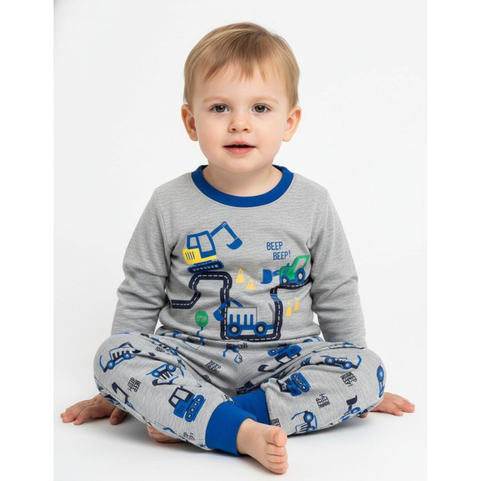 Dopřejte svému malému rošťákovi klidný a pohodlný spánek v roztomilém pyžamku s motivem bagru a traktoru!