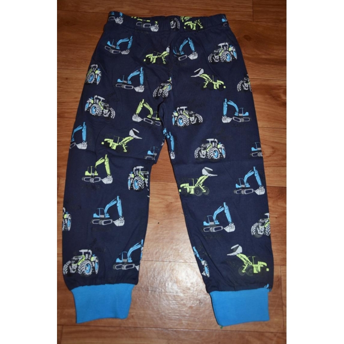 Barevné motivy – kalhoty zdobí traktory a bagry, které potěší každého fanouška strojů
