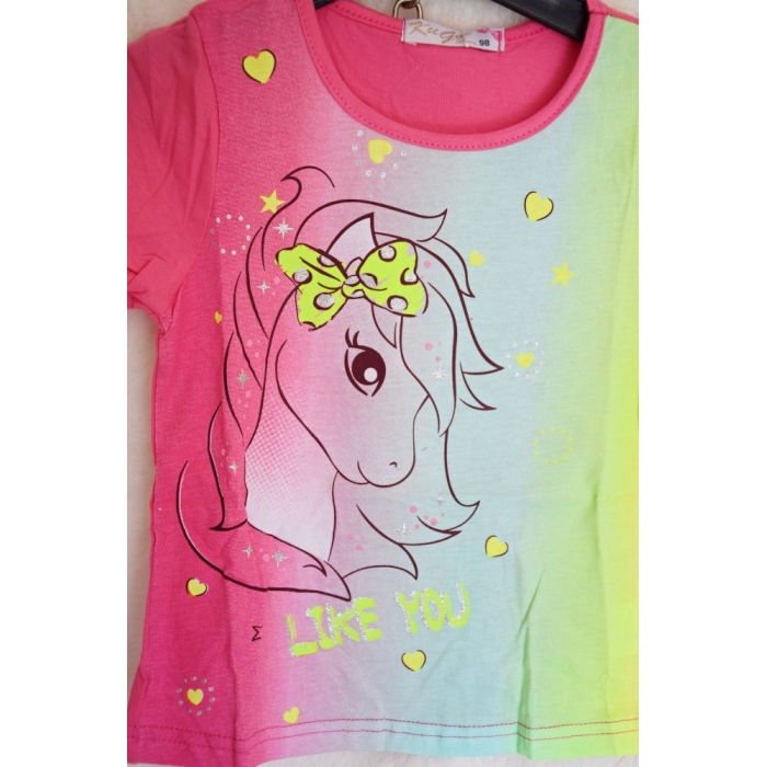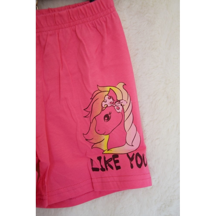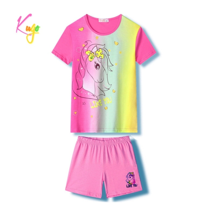 Dívčí letní pyžamo s jednorožcem - tm.růžové