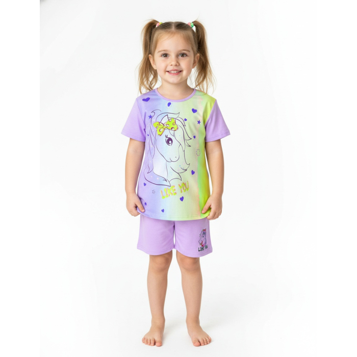 Dokonalý letní komplet pro vaši malou princeznu - krátký rukáv a kraťasy  pro příjemné spaní v létě.