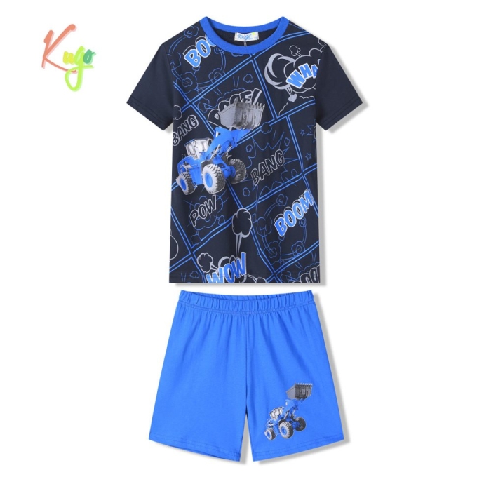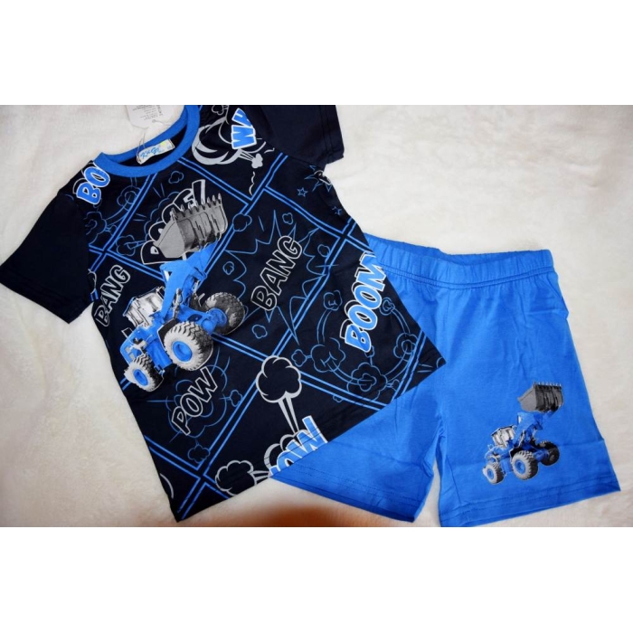 Pohodlné chlapecké pyžamko na léto. Zn. Kugo s motivem TRAKTOR - NAKLADAČ.