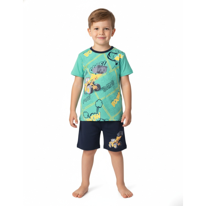 Pohodlné chlapecké pyžamko na léto. Zn. Kugo s motivem TRAKTOR - NAKLADAČ.