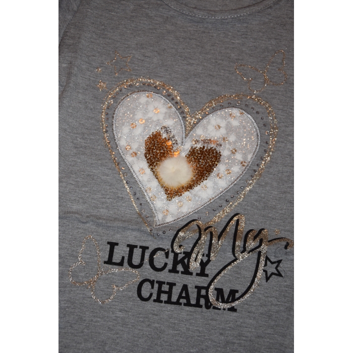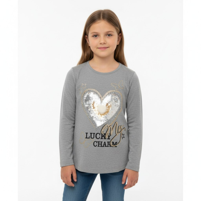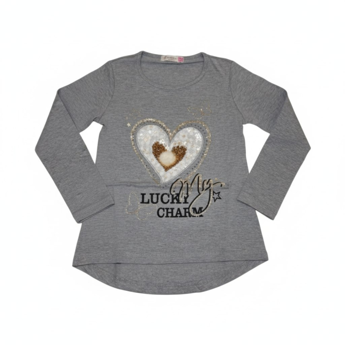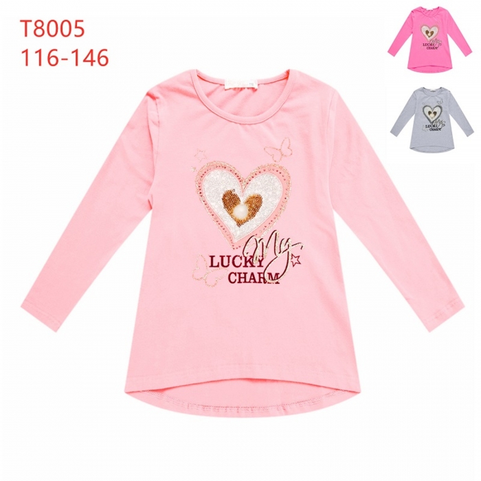 Krásné dívčí tričko - dlouhý rukáv s aplikací srdíčka.