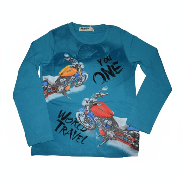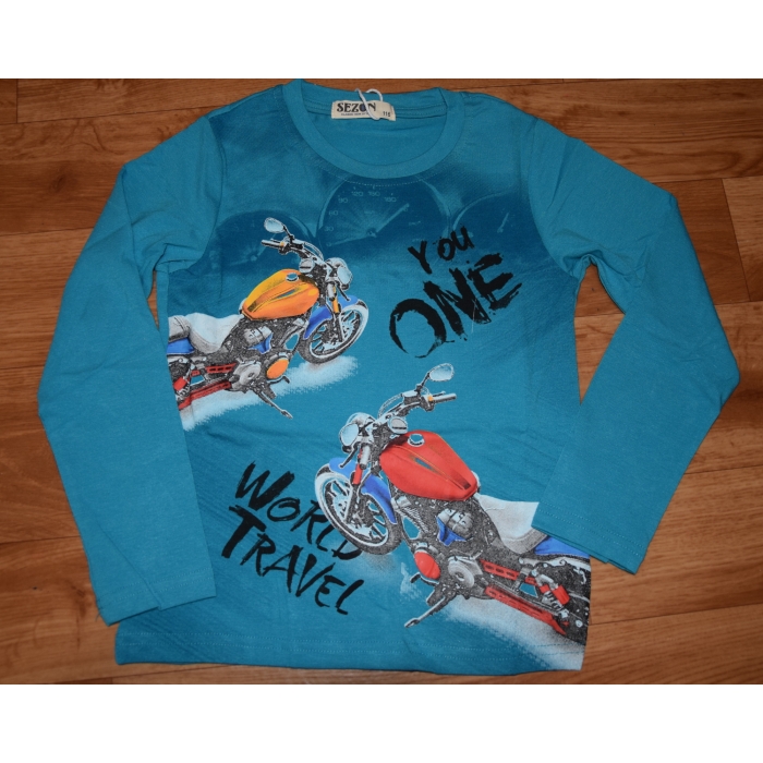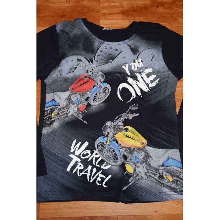 Krásné chlapecké tričko s obrázkem motorky a nápis.