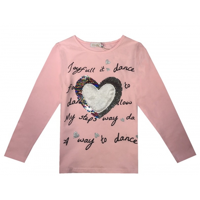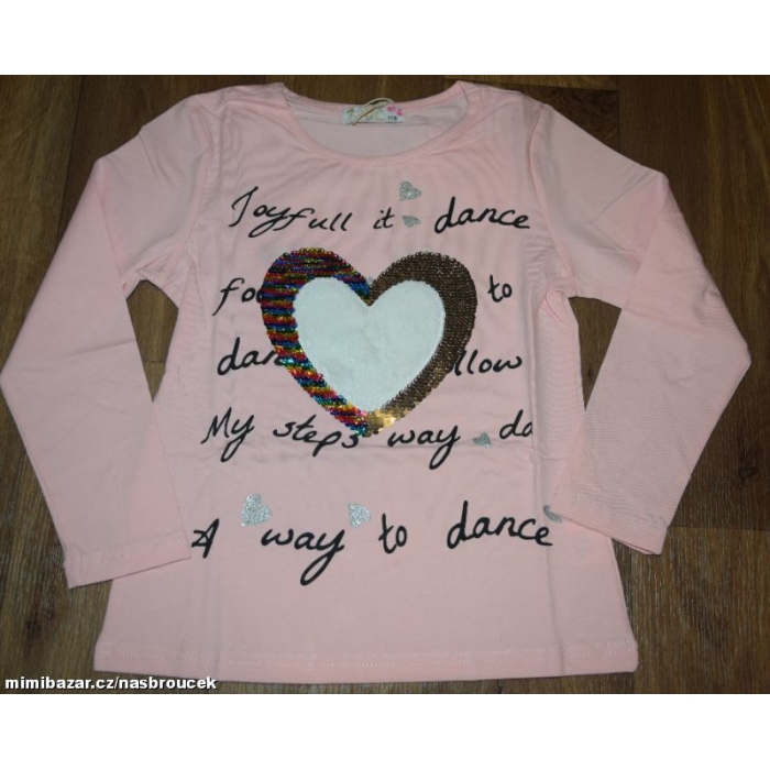 Dívčí tričko dlouhý rukáv s 3D aplikací SRDÍČKA