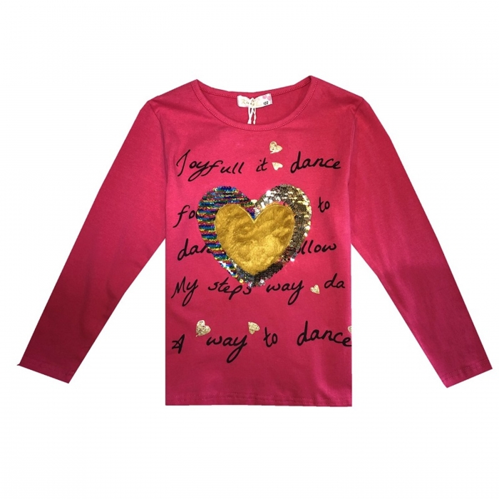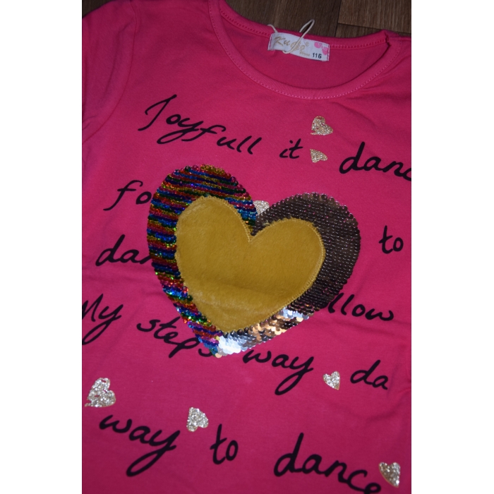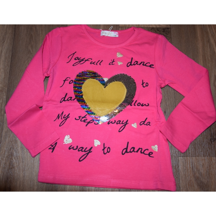 Krásné dívčí tričko - dlouhý rukáv s aplikací srdíčka.