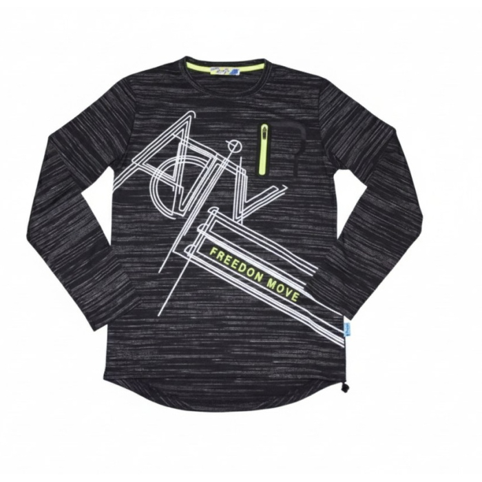 Tričko zdobí jemný proužek, nápis a imitace zipu / kapsičky