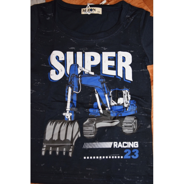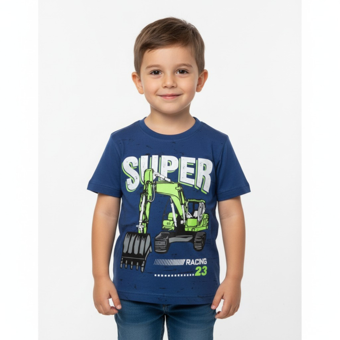 Krásné chlapecké tričko s bagrem - potisk na předním díle.