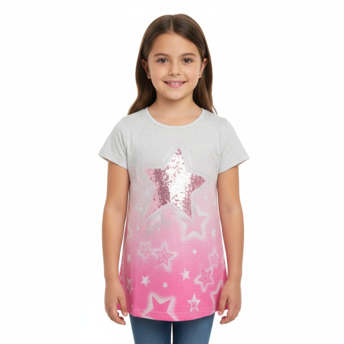 Rozzařte šatník své malé princezny kouzelným tričkem, které září třpytivými flitry ve tvaru hvězdičky
