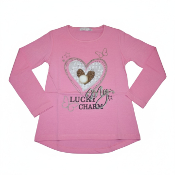 Krásné dívčí tričko - dlouhý rukáv s aplikací srdíčka.