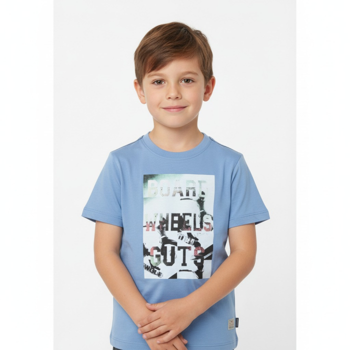 Letní chlapecké tričko nápis potisk - imitace zipu.