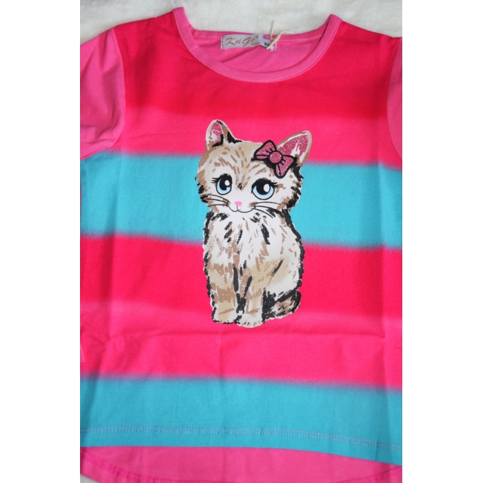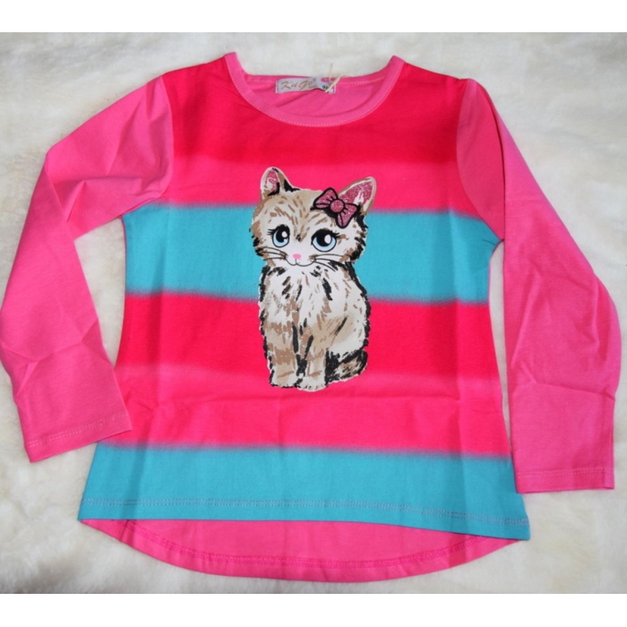 Duhové tričko s roztomilou kočičkou, jistě udělá radost Vaší holčičce.