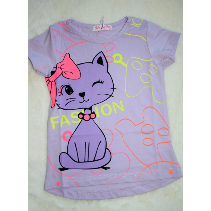 Objevte kouzlo roztomilosti s naším dívčím tričkem s krátkým rukávem a motivem kočičky.