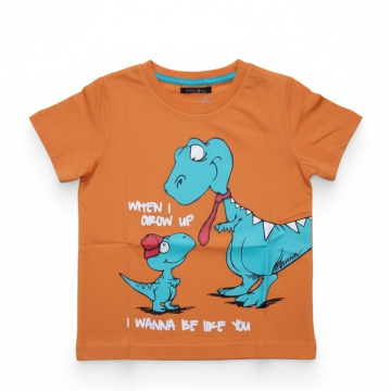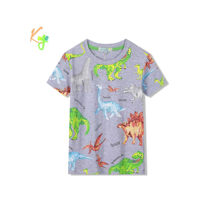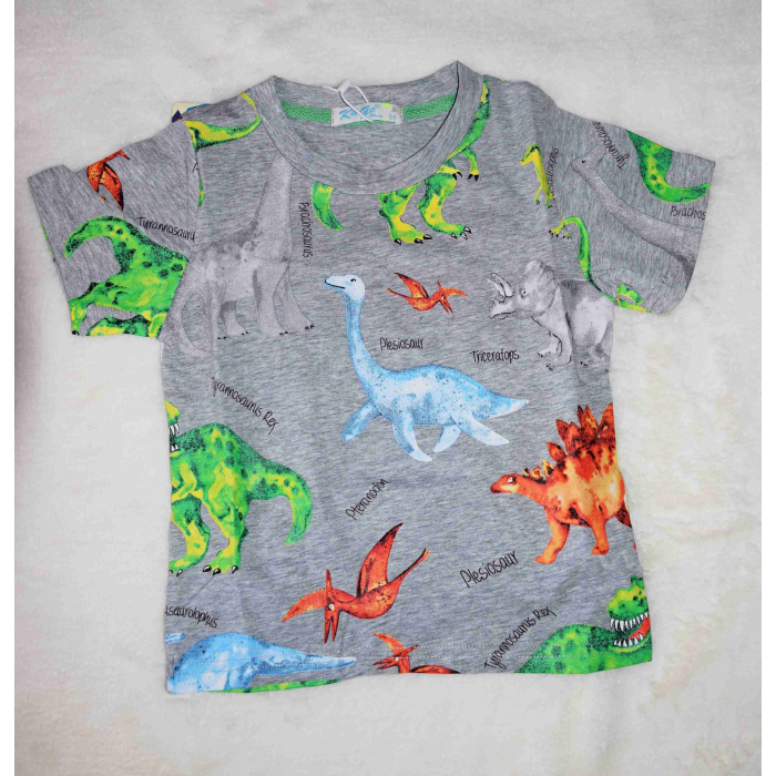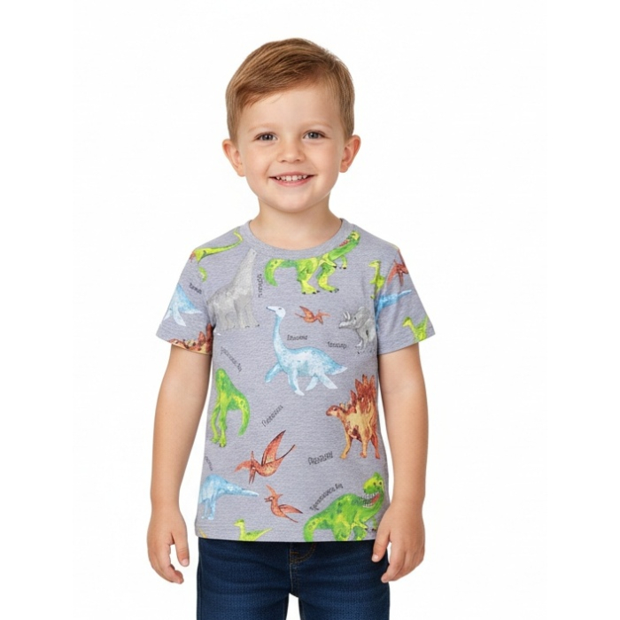 Toto pohodlné letní tričko s krátkým rukávem zdobí pestrobarevní dinosauři na přední i zadní straně