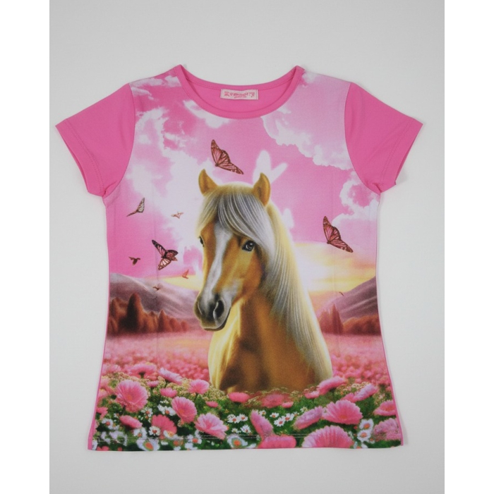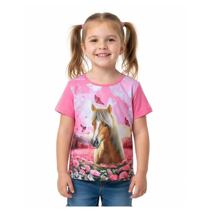 Kalhoty do gumy s obrázky koníků.
