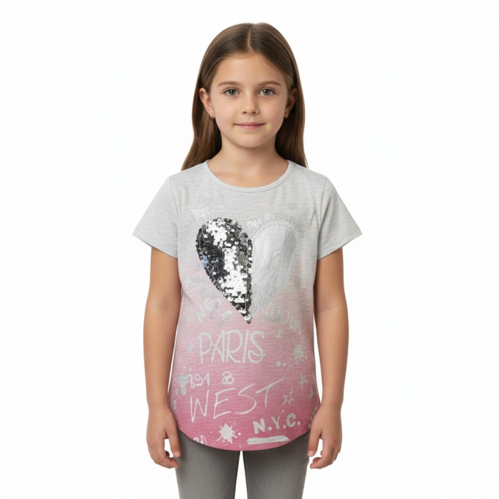 Rozzařte šatník své malé princezny kouzelným tričkem, které září třpytivými flitry ve tvaru srdíčka!