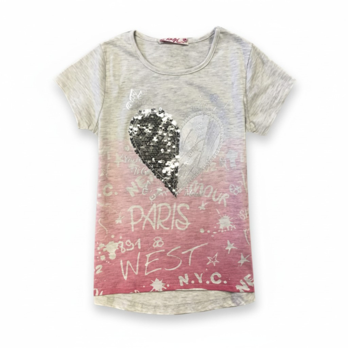 Dívčí tričko s třpytivými flitry srdíčko.