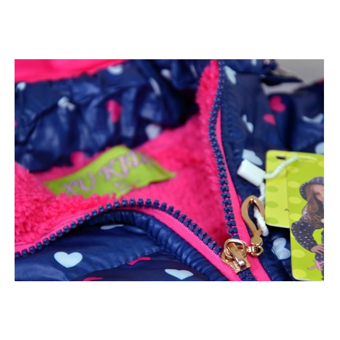 Uvnitř bundy je hřejivé duté vlákno a měkká fleecová podšívka s chlupatým kožíškem, které vaši holčičku zahřejí.