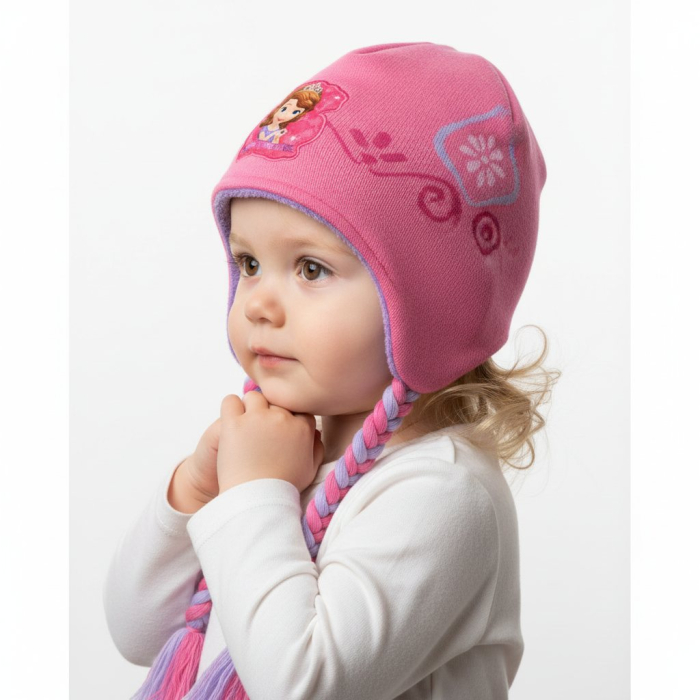 Dívčí zimní čepice s prodloužením na uši + copánky
