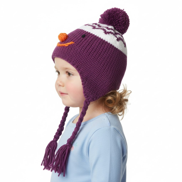 Zimní čepice Sofie s prodloužením na uši + copánky.