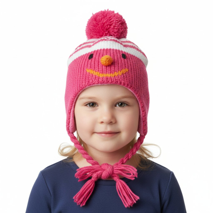 Teplá dívčí pletená čepice s bambulí
