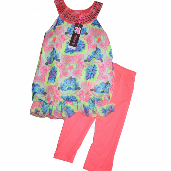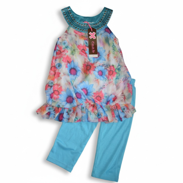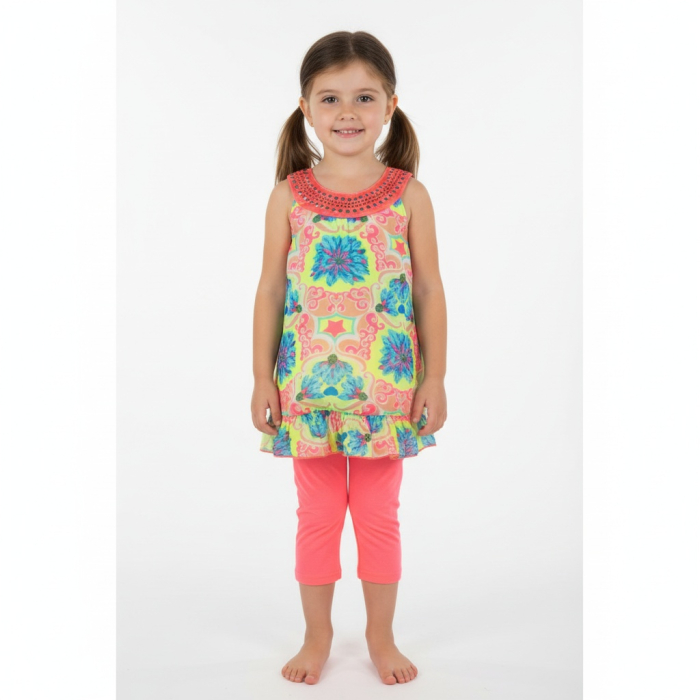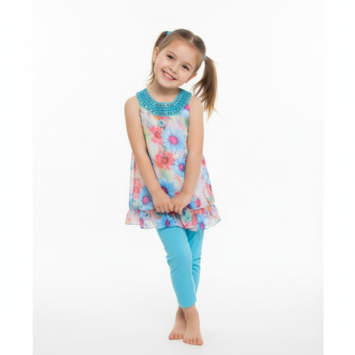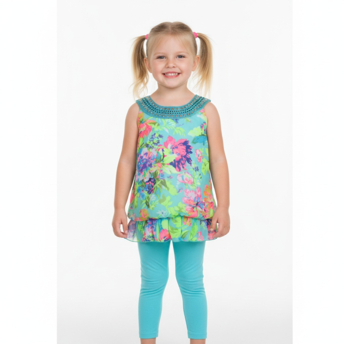 Květovaná tunika a jemné legíny vytvoří dokonalý outfit pro teplé dny plné zábavy.