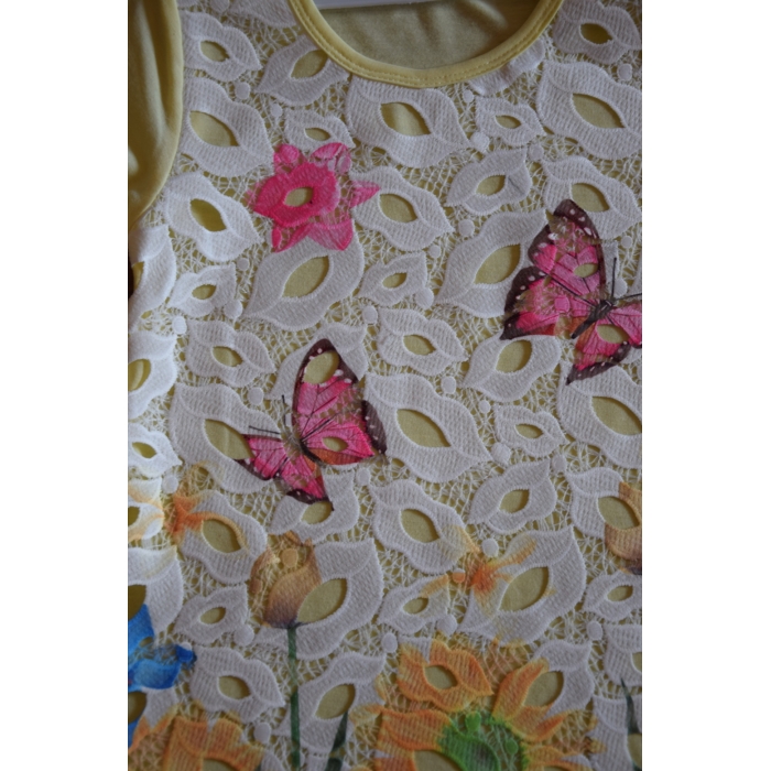 - horní vrstva z jemné krajkoviny s květinovým vzorem a roztomilými motýlky