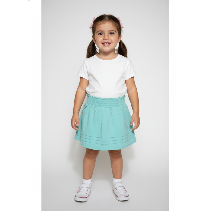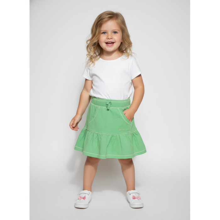Díky materiálu z 95% bavlny a 5% elastanu je sukýnka lehká, prodyšná a příjemná na dětskou pokožku.