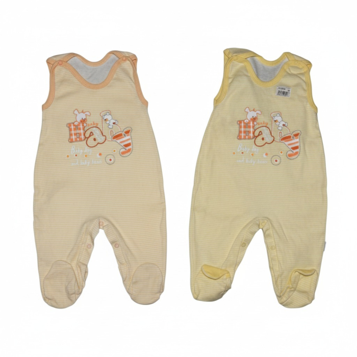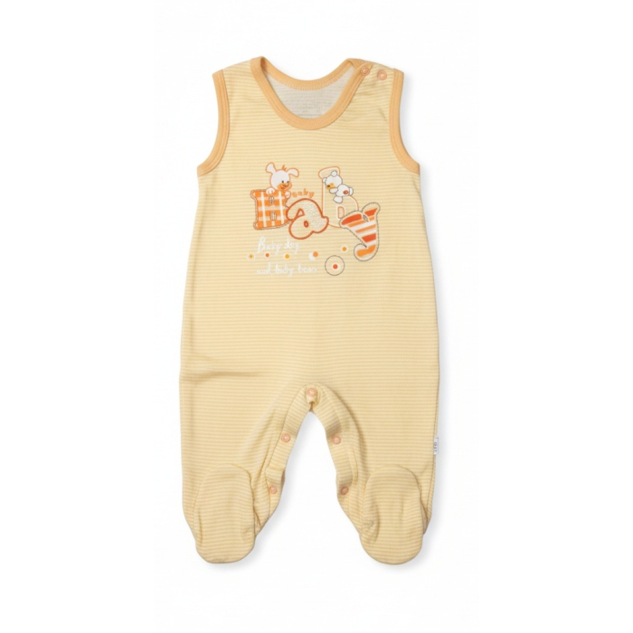 Kojenecké bavlněné dupačky Malewo - pruhované s medvídkem.