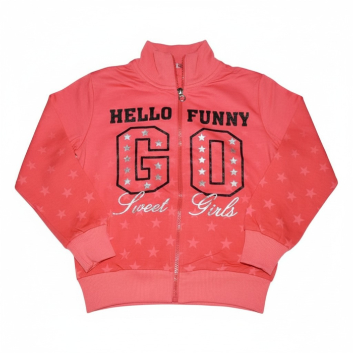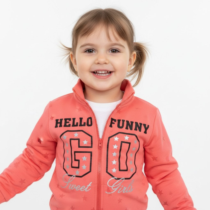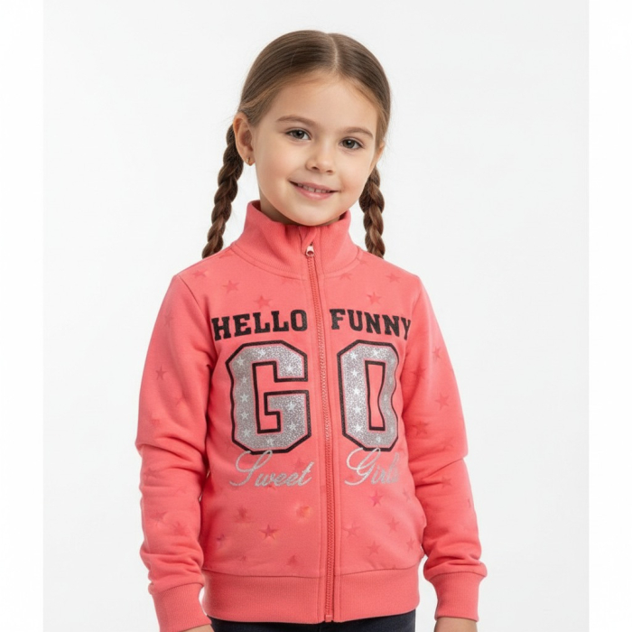 Tepláková mikina s hravým nápisem a třpytivými hvězdičkami je přesně to, co vaše dcera potřebuje – ať už do školy, na kroužky, nebo na víkendové dobrodružství.