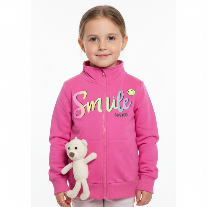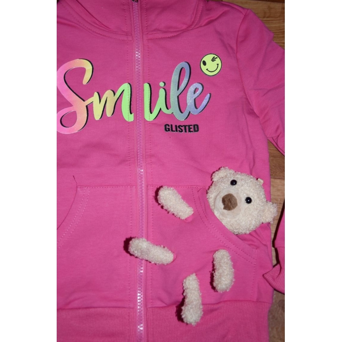 K mikině patří roztomilý plyšový medvídek, kterého si holčička může zastrčit do kapsičky.