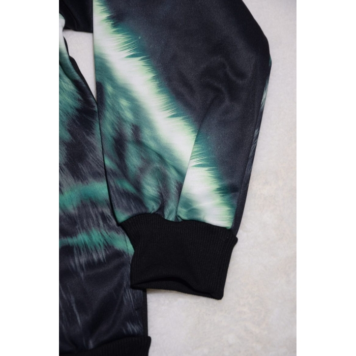 - Mikina má rukávy do manžety, zapínání na zip do stojáčku.