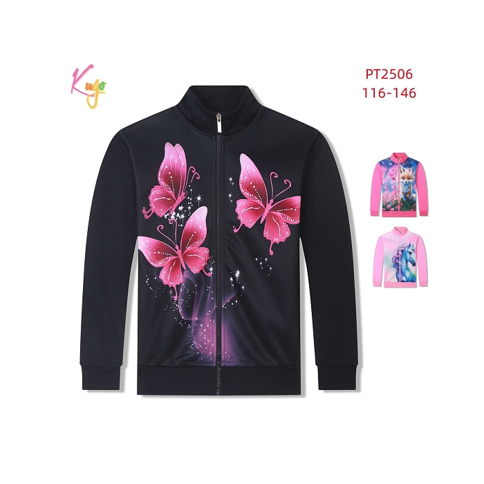 Mikina bez kapuce s obrázkem motýlů. Moderní vzhled - potěší každou holčičku.