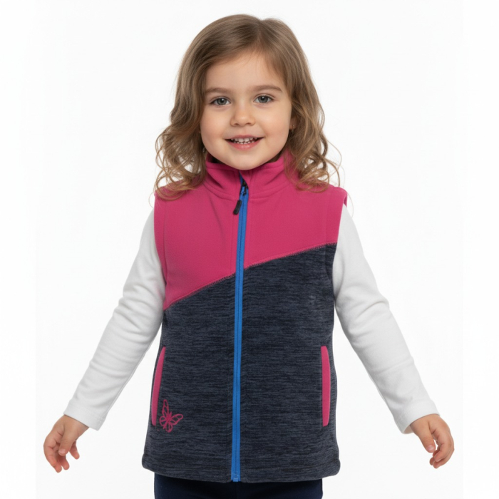Tato fleecová vesta s roztomilou výšivkou motýlka je přesně to, co potřebujete – spojuje pohodlí, kvalitu a design, který holčičky milují.