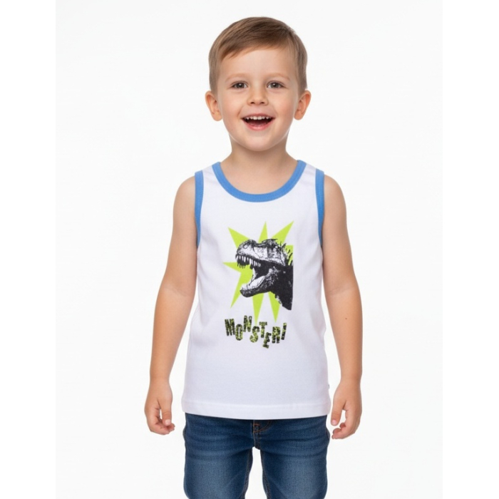 Tílko má na předním díle obrázek dinosaura