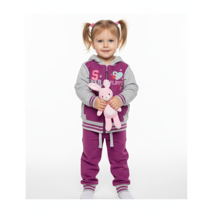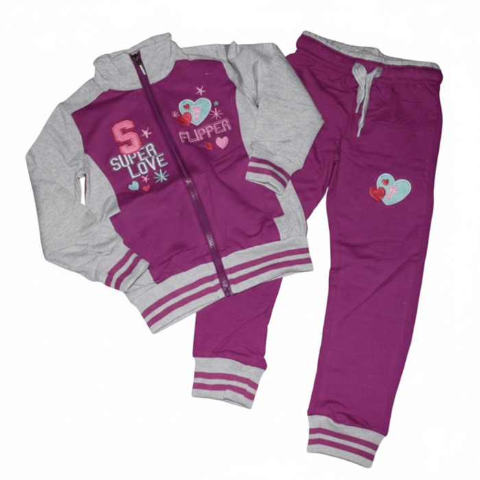Tato tepláková souprava se srdíčkovým motivem spojuje praktičnost s dívčím šarmem – ať už jde o školku nebo lenošení doma.