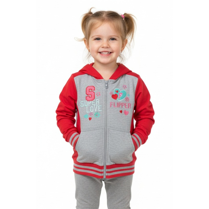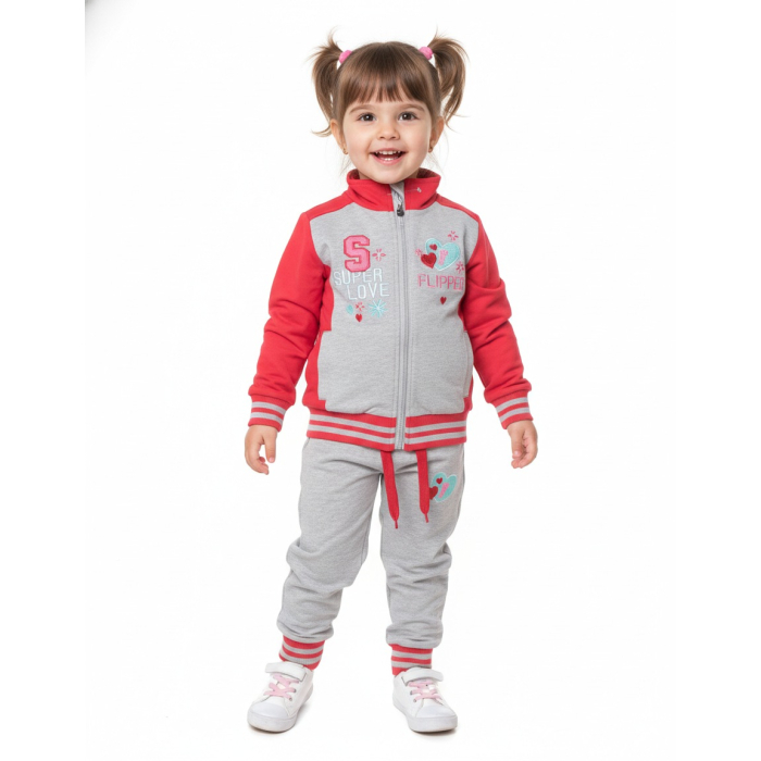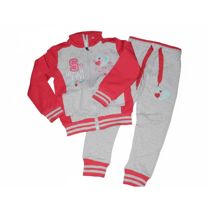 Tato tepláková souprava se srdíčkovým motivem spojuje praktičnost s dívčím šarmem – ať už jde o školku nebo lenošení doma.