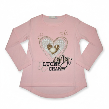 Krásné dívčí tričko - dlouhý rukáv s aplikací srdíčka.