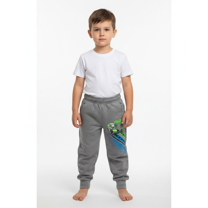 Tyto tepláky si vaši kluci zamilují! Originální potisk s bagrem a nápisem promění každý den v dobrodružství na stavbě. 🏗️