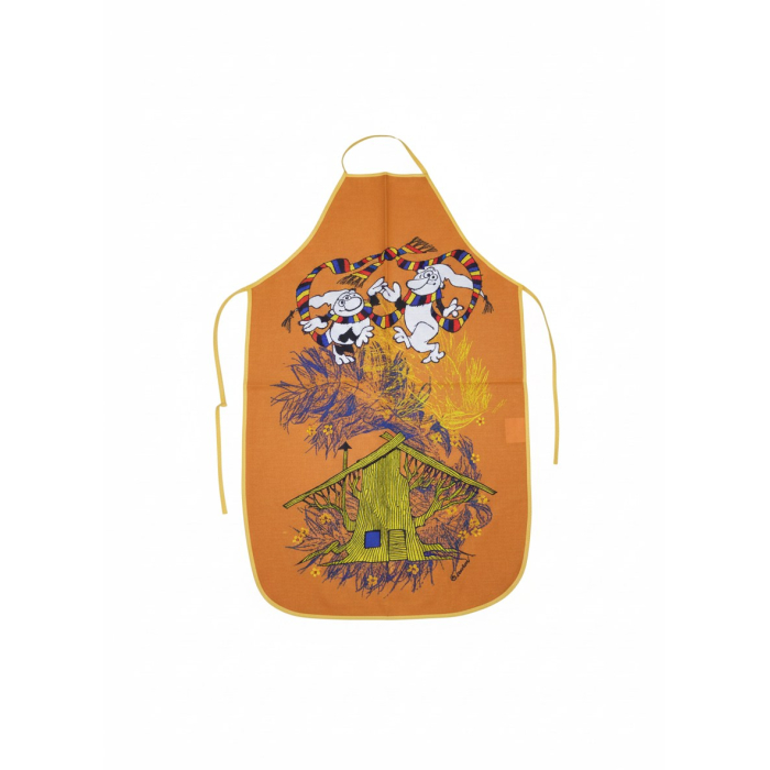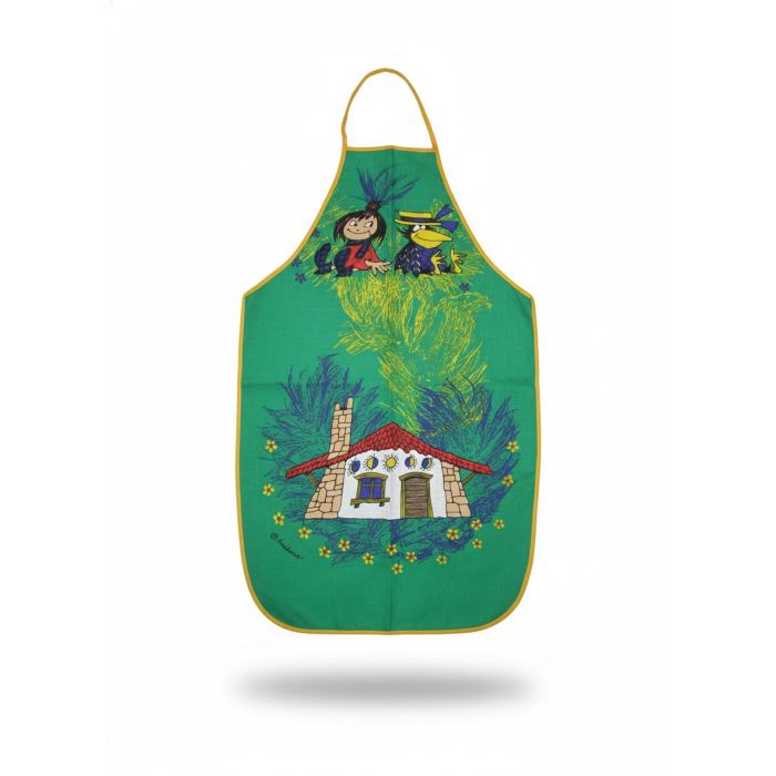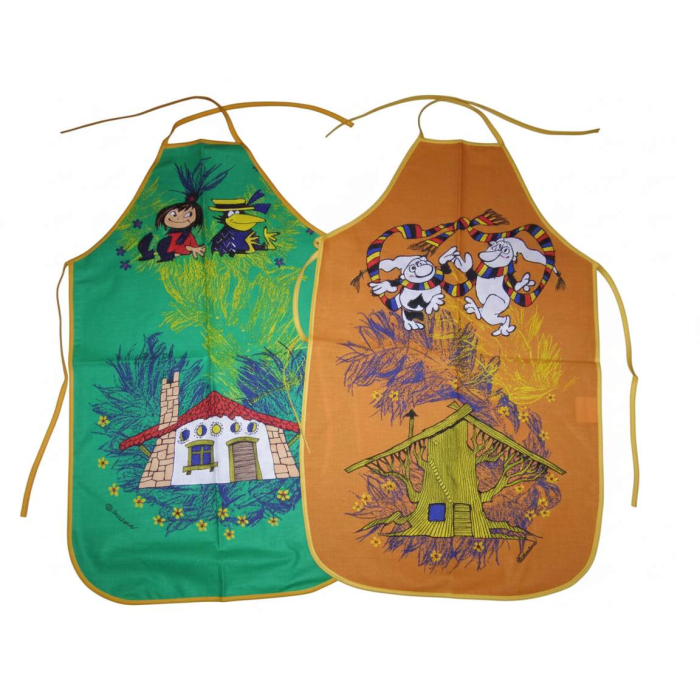 Dětská bavlněná pracovní zástěrka s večerníčkovým motivem, barevně lemovaná