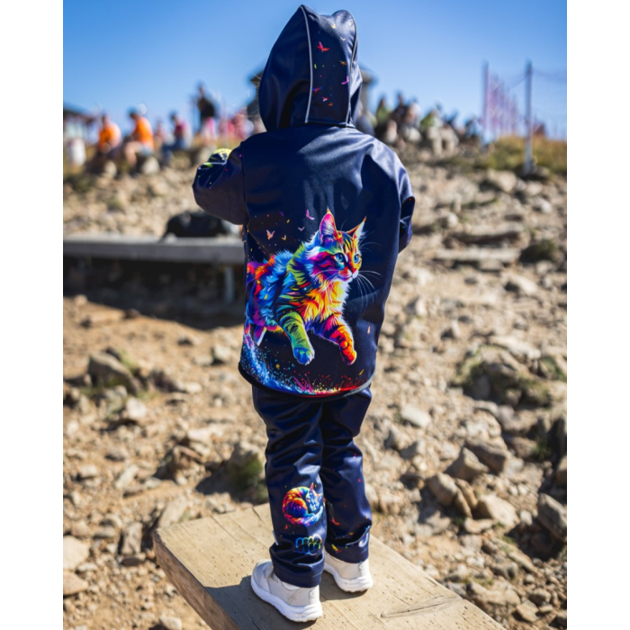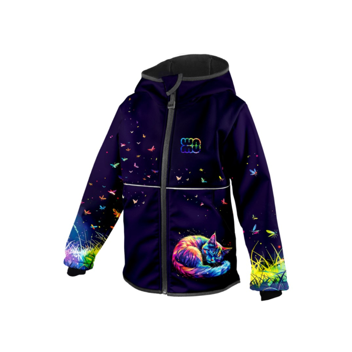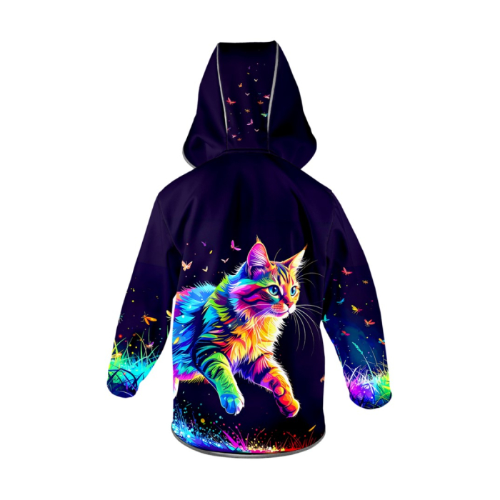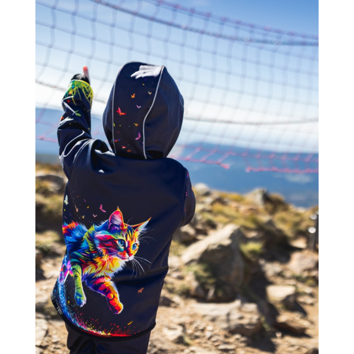 Každá kočka má devět životů a tahle softshellová bunda je má taky. Vydrží i to nejbláznivější počasí a díky duhovému kočičímu motivu září i za pošmourného dne. Funkční styl, který si žádá obdiv na každém kroku!