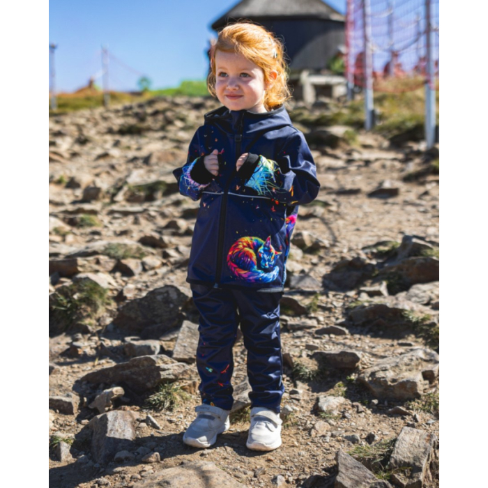MATERIÁL -  Recyklovaný softshell - extrémně prodyšný (18 000 g/m/24h), děti se nepotí ani během náročnějších aktivit.